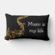 coussin à thème de musique classique avec échelle de notes de musique de couleur or et texte qui dit Music Is My Life. Conçu pour un musicien, un passionné de musique, ou offrez-le comme cadeau à votre professeur de musique.