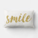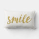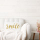 Une magnifique police de lettres à la main dans le faux sourire d'or posée sur un oreiller à lancer décoratif arrière - plan blanc. La couleur arrière - plan peut être changée pour correspondre à votre décor de vacances. Visitez notre boutique pour une large gamme d'oreillers décoratifs jetés dans un assortiment de couleurs et de styles. Montrez votre style unique en jetant quelques-uns de nos coussins décoratifs sur votre canapé pour ajouter un peu de couleur et de style.