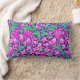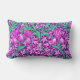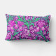 Lumbar coussin dans un William Morris, Art Nouveau, impression textile d'iris et de feuilles, numériquement rehaussée et colorée, dans une orchidée douce et turquoise, sur un profond améthyste violet arrière - plan