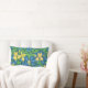 Coussin Lumbar dans un William Morris, Art Nouveau, imprimé textile d'iris et de feuilles, numériquement rehaussé et coloré, en jaune doré, vert et bleu doux, sur un arrière - plan bleu cobalt profond