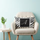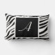 Élégant oreiller de 21 po x 13 po imprimé sur mesure et conçu avec un motif d'impression zèbre noir et blanc personnalisé avec votre initiale en blanc sur un carré noir.