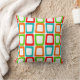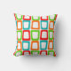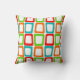 Cet oreiller de lancer a un design moderne du milieu du siècle de rectangles torsadés répétitifs en rouge, orange, vert et turquoise.