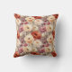 Coussin Red Burgundy Cream Stripes Flowers Leaves