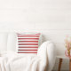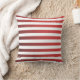 Cette coussin moderne présente des rayures rouges foncées et blanches à l'avant et un dégradé rouge foncé à l'arrière.