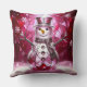 Beautiful Red Snowman Snowflakes Holiday Throw Pillow