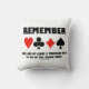Have you gone down horribly at the bridge table, on the order of -400, -500, -800, etc.? Let your wry bridge player side shine the next time you take a nap with this throw pillow featuring the four card suits along with the following reminder saying to any bridge player who engages in risky bidding behavior or poor play: "Remember There Are At Least A Thousand Ways To Die At The Bridge Table". No need to be an avid bridge player or bridge teacher to enjoy this sound reminder that bridge is a humbling game indeed!