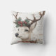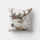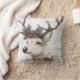 Cet oreiller festif à jetons présente une illustration rustique d'un renne avec une couronne de pin et de baies rouges sur ses bois. L'arrière - plan a un look vintage, texturé avec script manuscrit, et "Joyeux Noël" est affiché en gras rouge. Parfait pour ajouter une touche de vacances confortable à votre période de Noël.