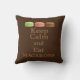 Lancer l'oreiller dans un motif de citron vert, fraise et chocolat macarons français accompagnant le message classique "garder le calme"