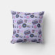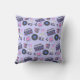 Retro bleu et rose Vinyl Records, boombox, jeux vidéo et cassettes coussin d'anniversaire.