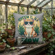 Coussin Rétro "Green is the New Meow" Cool Chat Nature Art