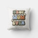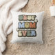 Offrez à votre mère ce coussin de style hippie rétro avec le dicton "MEILLEUR MOM JAMAIS" en police vintage multicolore 60s/les années 70, des fleurs blanches en gras, le nom de qui il vient, et une photo des enfants sur le dos. Ce coussin photo personnalisé ferait un cadeau de jour parfait pour les mères ou un gardien spécial pour votre anniversaire de maman!