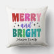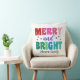 Coussin Retro Merry and Bright Customizable Name Christmas