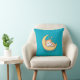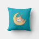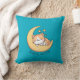Coussin bleu mignon avec un orange dormant, chat gingembre dormant sur une lune jaune croissant. Trois étoiles jaunes sont disposées autour des oreilles des chats. Sous le chat dans un simple script noir dit "Dream Big, Nap Souvent"