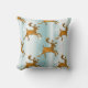 Ce charmant coussin de Noël abrite un motif de rennes dorés qui court à travers la glace. Il y a aussi des étincelles blanches et des étoiles qui scintillent tout autour. Cet or festif et ce coussin bleu pâle ajouteront un charme fou à la décoration de Noël de tous pour les vacances.