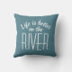 Caractéristiques de design Life is Better on the River Citation Ajouté à la turquoise tendance avec police blanche. La couleur de l'arrière - plan et les polices sont facilement changées dans la section de l'outil de conception. N'oubliez pas de consulter nos autres coussins de devis !