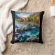 Coussin avec une photo pittoresque représentant des montagnes couvertes d'arbres aux couleurs de l'automne. Une rivière animée s'écoule autour d'une multitude de rochers. Une grande pleine lune blanche plane au-dessus.