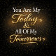 Add a touch of romance and elegance to your home with this beautifully designed throw pillow featuring the heartfelt quote, “You Are My Today & All Of My Tomorrows.” Designed with a luxurious black gradient background, glowing gold script, and elegant white serif typography, this cushion creates a warm and sophisticated vibe in any space.