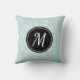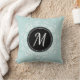 Beau oreiller jetable avec monogramme personnalisé avec motif de couronnes florales bleu et blanc pâle.