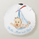 Coussin Rond Bébé Transporté par une Cigogne