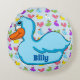 DEUX COUSSINS EN UN ! Un mignon canard bleu compose ce coussin réversible amusant. Personnalisable pour pouvoir ajouter votre propre texte et modifier la couleur de l'arrière - plan. Ce design est également disponible sur un coussin carré.