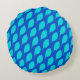 Ce coussin rond présente une séquence de feuilles menthol turquoise plats sur un arrière - plan bleu.