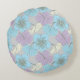 « Ajoutez une touche douce et élégante à votre décoration avec ce coussin rond floral pastel présentant de délicates fleurs de trèfle bleues et violettes. Sa forme unique en fait un accent charmant pour les canapés, les chaises ou les lits, tandis que son design cosy le rend parfait pour offrir. »