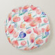 Un beau coussin rond avec un motif de tulipes à aquarelle transparent.