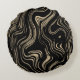 Dispose d'un design doré marbré abstrait sur un arrière - plan noir.