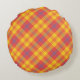 Coussin rond plaid rouge clair jaune bleu, coussin