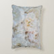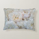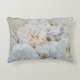 Des roses blanches éparpillées sur un oreiller à lancer.