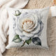 Coussin Rose blanche et rosebud, Feuilles d'argent