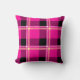 Coussin Rose chaud, noir et jaune plaid