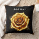 Une rose dorée détaillée entourée de bordures radieuses, sur un fond noir profond. Atmosphère élégante et luxueuse idéale pour des conceptions décoratives, romantiques ou de célébration.