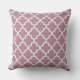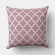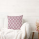Le coussin carré moderne avec accent présente un élégant motif en quatrefoil marocain dans des tons rose/mauve rose et blanc. Notez que la couleur arrière - plan peut être modifiée pour correspondre à votre décor maison.