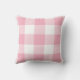 Ce coussin chic comporte un motif rustique de contrôle de buffle dans le rose en pastel et le blanc.