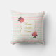Roses roses douces et menthe fraîche sur fond blanc oreiller jeté rayé. Texte Home Sweet Home uniquement sur le devant peut être personnalisé. Apportez un peu de douceur et de fraîcheur dans votre vie ! Achats heureux ! S'il vous plaît, revenez !
