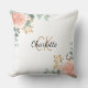 Coussin Rose or rose fleurie vert nom monogramme