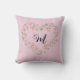 Coussin Rose Orange Floral et Vert Coeur Monogramme