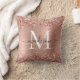 Parties scintillant en or rose vif étincelante en métal brossé Script monogramme Lancer oreiller