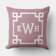 Un élégant coussin de jet rose poussiéreux présentant un monogramme personnalisable à trois lettres à l'intérieur d'un cadre de bordure géométrique à clé grecque blanche. Le design romantique blanc sur rose poussiéreux apporte une touche chaleureuse et féminine aux chambres à coucher, salons ou coins de lecture. Personnalisez avec vos initiales ou un monogramme de couple pour un beau cadeau.