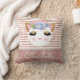 Coussin princesse rosé rose rosé. Joli visage de princesse chatte en or rose, parties scintillant rose et or rousse, nez en forme de coeur rose et de grands cils dorés parties scintillant, avec une couronne et un arrangement floral rose et bleu. Rose or et lignes blanches rayées arrière - plan avec un ruban perle. customisez facilement et ajoutez votre nom pour personnaliser le coussin.