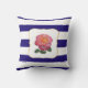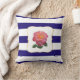 Coussin Rose rose sur bleu marine et blanc rayé