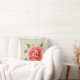 Coussin Rose rouge sur pois blancs et lime
