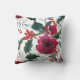 Une autre vue de l'étonnante aquarelle florale motif de Noël de beaux roses bordeaux peints à la main, de la verdure des pins, des feuilles verts et blancs, et des baies sèches recouvrent ce bel oreiller jetable, disponible en différents styles et tailles. De belles couleurs de Noël, mais une décoration parfaite toute l'année !