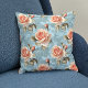 Coussin Roses élégants de pêche sur Arrière - plan bleu