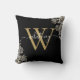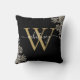 Oreiller jeté monogramme de script floral élégant et moderne de roses noires et dorées. Vous pouvez personnaliser le nom et la monogramme initiale pour créer votre design unique. Conçu par Thisisnotme