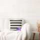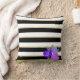 Coussin Roses violets sur noir, blanc, Gold Stripes Cushio