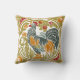 Un coq de style Art nouveau avec des fruits dans chaque coin en vert rouge oranges et gris. Un coussin parfait pour la cuisine salle à manger.