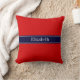 Coussin Rouge uni, ruban bleu marine Nom Monogramme
