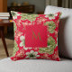 Coussin Rouge Vert aquarelle Script floral